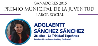 El Ayuntamiento de Tlaxcala a través del Instituto Municipal de la Juventud (IMJUVET), premió la labor social que realiza la joven Adglaentt Sánchez Sánchez, originaria de la comunidad de la Trinidad Tepehitec.