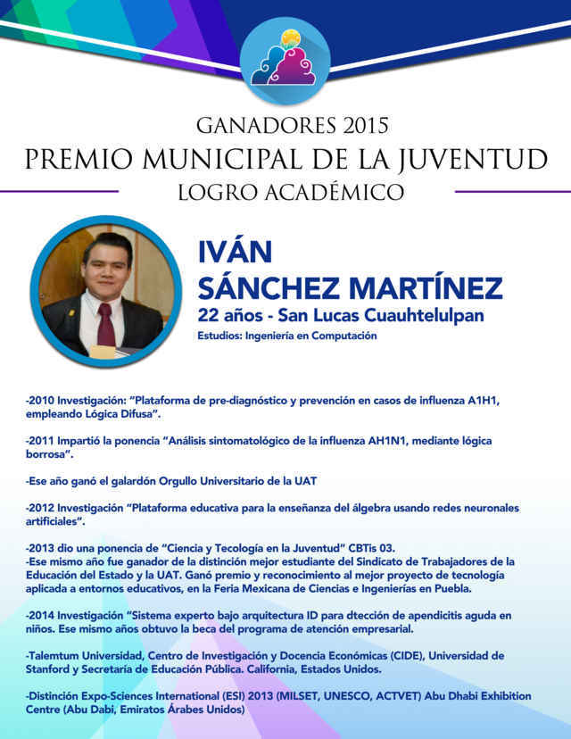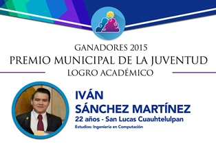 El Ayuntamiento de Tlaxcala a través del Instituto Municipal de la Juventud Tlaxcala (IMJUVET) premió a Iván Sánchez Martínez de 22 años, originario de la Comunidad de San Lucas por sus importantes logros académicos.