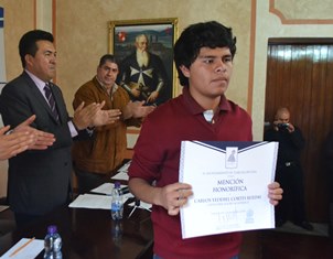 El Ayuntamiento de Tlaxcala, a través del Instituto Municipal de la Juventud Tlaxcala (IMJUVET), otorgó mención honorífica a Carlos Yeddiel Cortes Ruelas, de 16 años, por su brillante trayectoria académica.