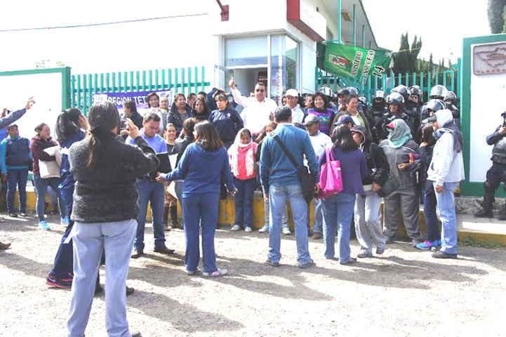 Un grupo de alrededor de medio centenar de integrantes de la CNTE entre maestros, alumnas de la Escuela Normal Rural “Benito Juárez” y jubilados, se concentraron en la entrada principal del Colegio de Bachilleres de Tlaxcala (COBAT), plantel 11 del municipio de Panotla, para impedir el ingreso de los 45 maestros que serán evaluados en esa institución.
