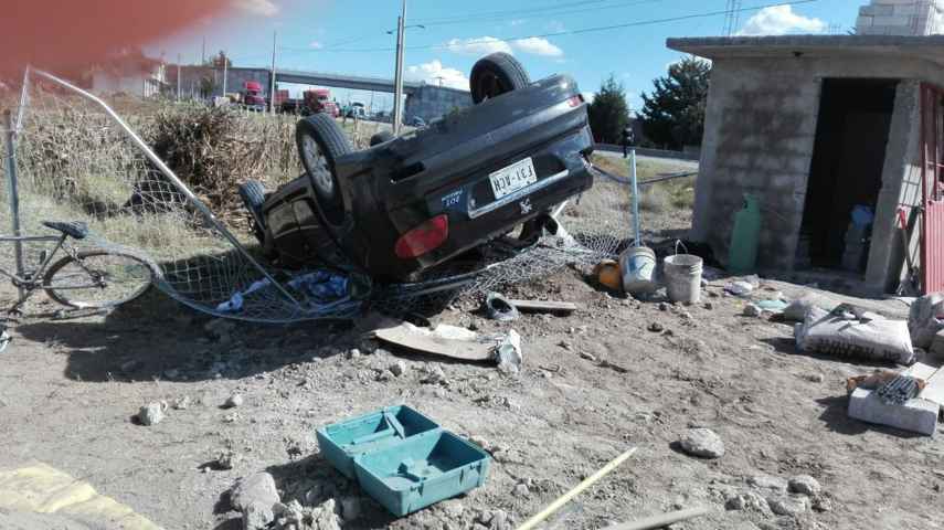 El vehículo volcado es un Peugeot 207 Passion con placas de circulación F31-ACH del distrito Federal, el cual quedó sobre el terreno de una casa en construcción.