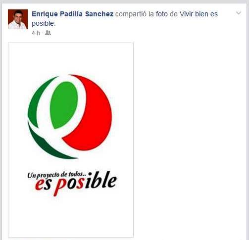 Con el slogan “Un proyecto de todos es posible” y los colores del Partido Revolucionario Institucional (PRI), el anuncio de Padilla Sánchez en la red social Facebook provocó diversas muestras de apoyo a su eventual participación para buscar un cargo de elección popular.