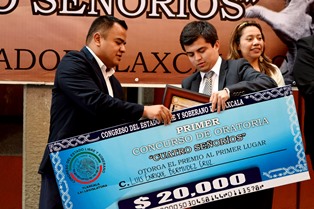 El joven Luis Enrique Bermúdez Cruz, originario de Zacatelco, obtuvo el primer lugar del Primer Concurso Estatal de Oratoria Premio Cuatro Señoríos “Al mejor orador tlaxcalteca”, certamen que fue organizado por el diputado Ángelo Gutiérrez Hernández, presidente de la Junta de Coordinación y Concertación Política (JCCP) del Congreso del Estado.