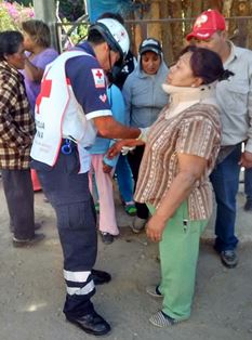 Paramédicos de la cruz roja a bordo de la unidad 904 arribaron al lugar y de inmediato atendieron a quien dijo llamarse Isabel Hernández Meza de 59 años de edad, la cual fue trasladada al hospital del sur de Nativitas para su atención médica.