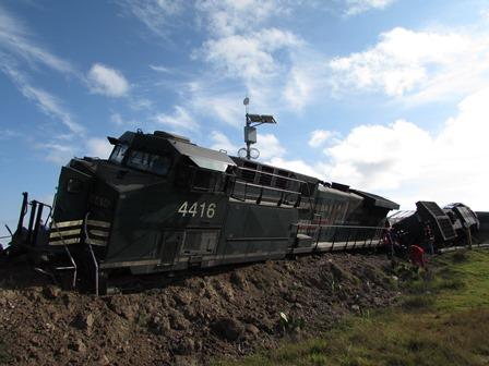 Las locomotoras con el convoy circulaban de oriente a poniente con dirección a la ciudad de Apizaco, con número económico 4416 y 4404.
