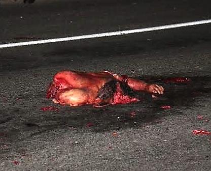 Se establece que es masculino, solamente por el tipo de calzado, pero el accidente es tan espantoso que hay partes del cuerpo regadas a lo largo de cien metros, lo mismo que parte de los autos que atropellaron el cuerpo que salió dramáticamente rebotando en la carpeta asfáltica, tras ser arrojado del auto en movimiento.