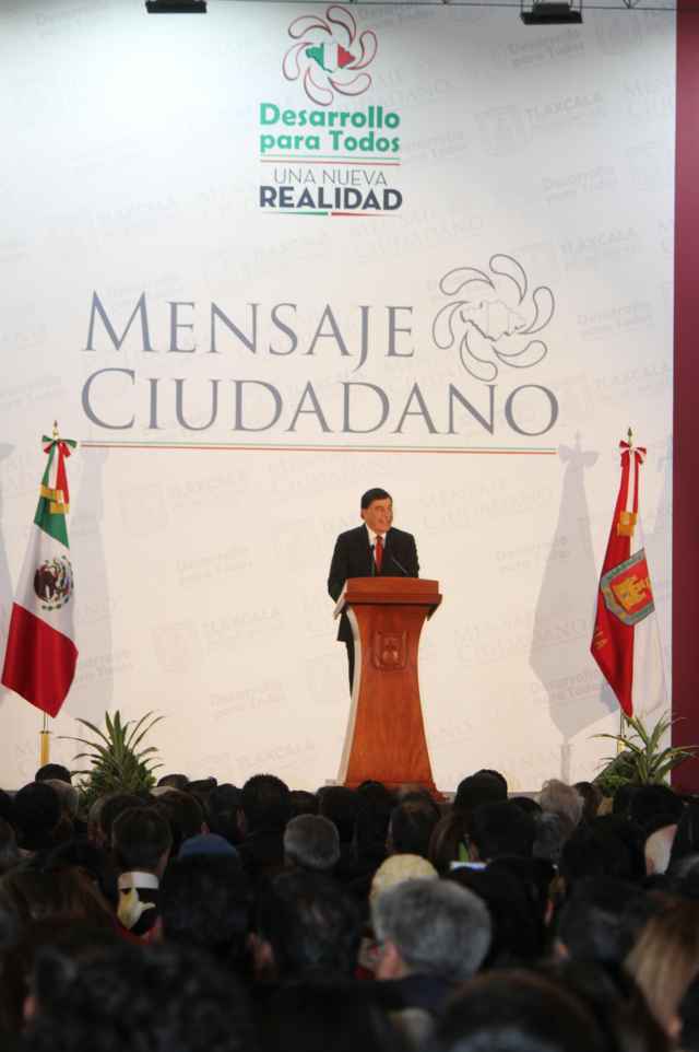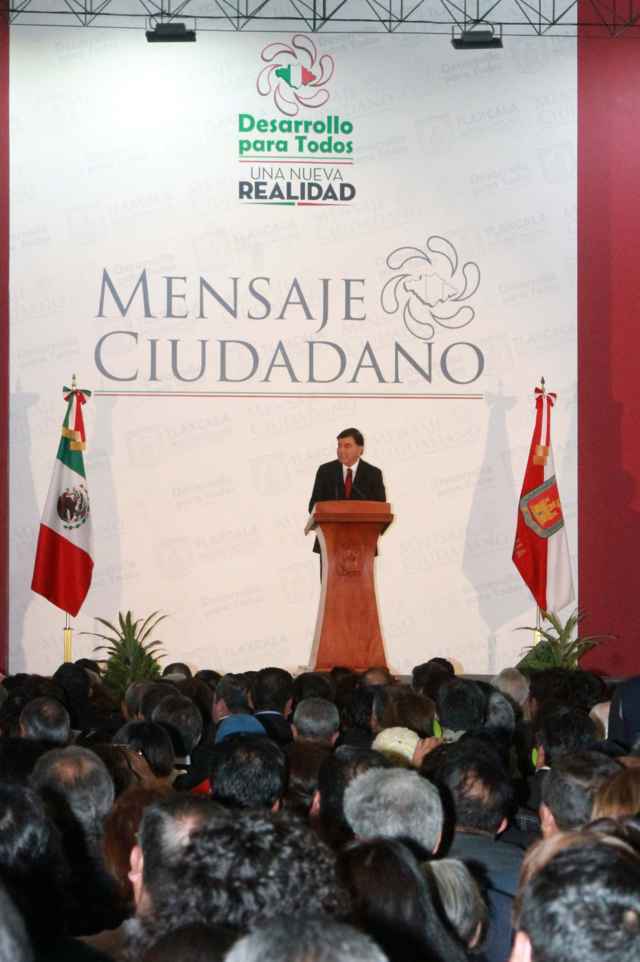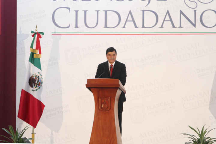 Ya en su discurso, el gobernador presumió cifras de presuntos logros y arremetió en contra de sus antecesores al mencionar que 12 años fueron de rumbo perdido, el mandatario dijo que encontró un Tlaxcala sumido en la pobreza y ahora tiene rumbo y futuro, además de que consideró su administración como un gobierno ciudadano.