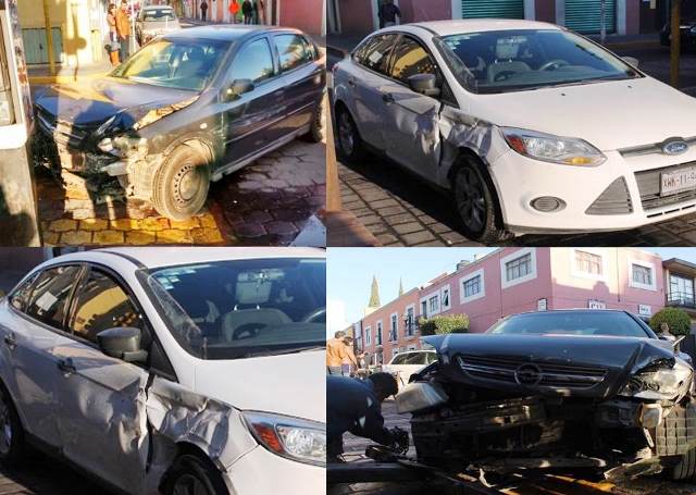 Solo pérdidas materiales dejó accidente vial en pleno centro de la ciudad capital, derivado de la aparente falta de precaución, lo cual solo provocó afectaciones en la vialidad.