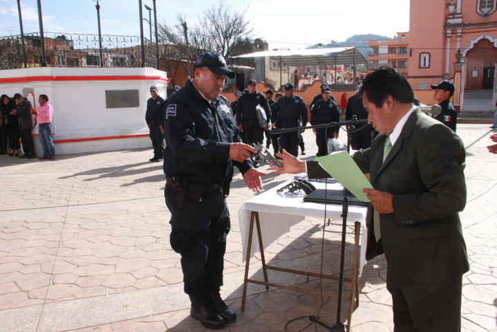 En un acto realizado posterior al tradicional Izamiento de Bandera de cada lunes, el alcalde Lima Vázquez, entregó lasarmas de fuego cortas, así como uniformes completos, equipo táctico y un reconocimiento a elementos que concluyeron su curso de “Formación Inicial para Policías Municipales”.