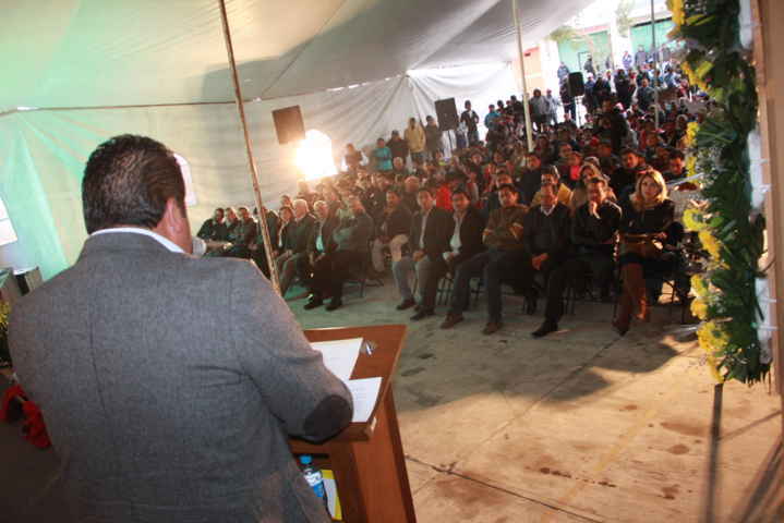 Al iniciar su mensaje ciudadano ante la presencia de Humberto Silva Flores director del trasporte de la SECTE, representante personal del gobernador del estado Mariano González Zarur, destaco el apoyo de las dependencias federales, y el esfuerzo del gobierno del estado, del municipal y de la sociedad con base al presupuesto aprobado, se lograron realizar trabajos en los 5 ejes rectores del Plan de Desarrollo Municipal.