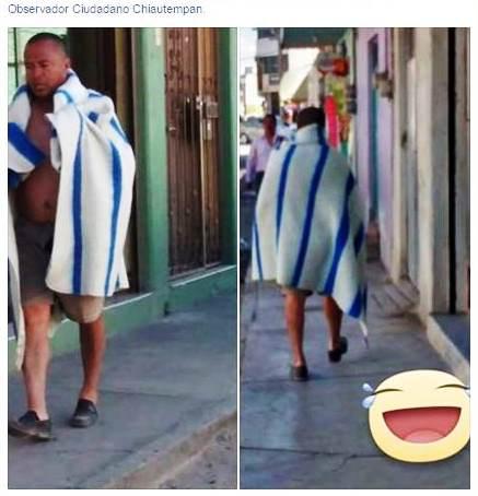 De acuerdo a las imágenes que circulan en la red social Facebook, evidenció el momento en que el representante popular transita en la vía púbica semi desnudo con apenas una toalla encima de su cuerpo.