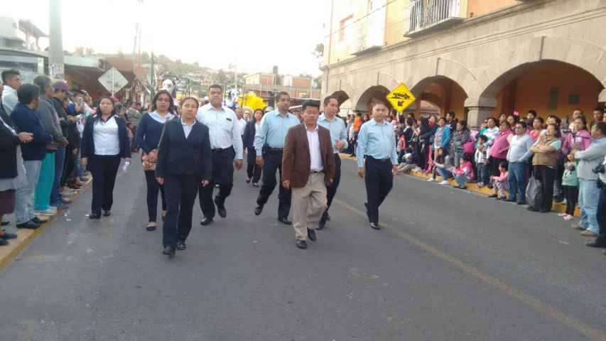 El desfile inició con camadas; rancheros 1936, la cuadrilla, tercer viernes mujeres, mujeres quinto viernes, los becerros, tercera edad hombres, mujeres tercera edad, estancia infantil “Oruguitas”, preescolar Juan Enrique Pestalozzi, la secundaria Santiago Xicohténcatl con su banda de guerra, primaria Melchor Ocampo con sus charros, entre otras más.