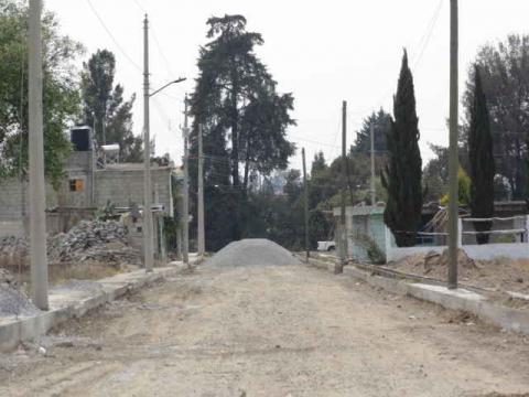 En el caso de la calle de las Flores, en el cerro del Otongatépetl, con una inversión de 2 millones 456 mil pesos, se lleva a cabo la introducción de drenaje, red para agua potable y la construcción de guarniciones, banquetas y pavimentación con asfalto.