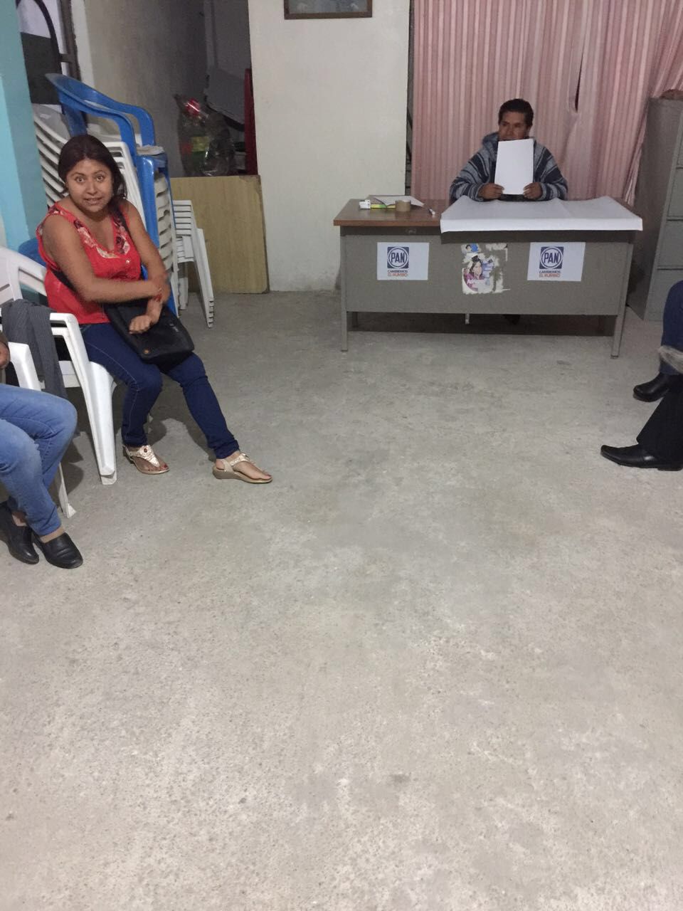 Luego, la joven encuestadora emprendió su camino y llevo a los vecinos hasta las instalaciones del Comité Municipal de PAN en Tetlanohcan, donde dijo que se encontraba su coordinadora y minutos después aceptó que era militante de ese partido político.