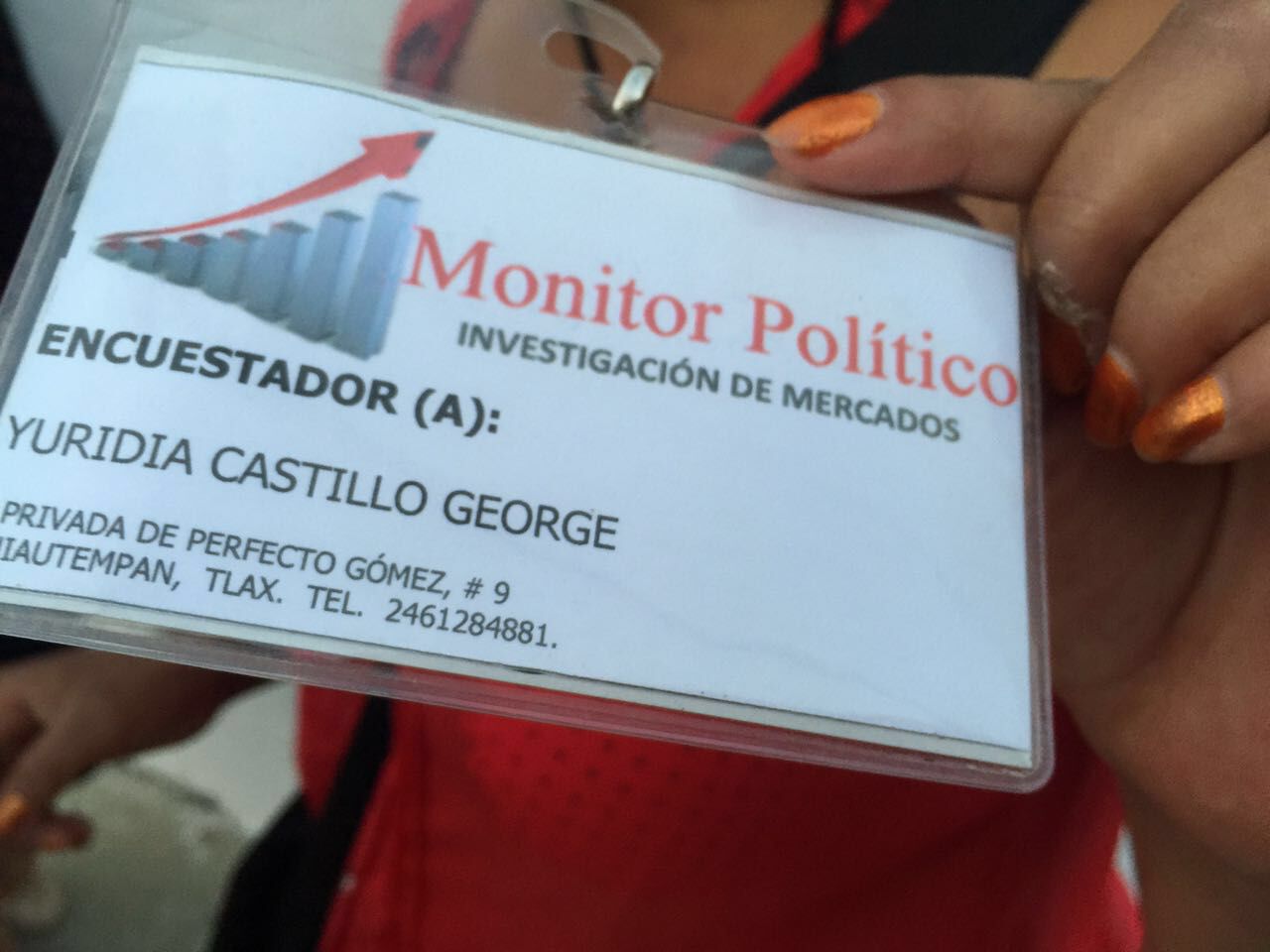 Este medio de comunicación no ha podido encontrar una referencia de la empresa “Monitor Político”, Investigación de Mercados, pues la dirección que aparece en el gafete del encuestador que se ubica en Santa Ana Chiautempan corresponde a una casa vacía, además de que el número telefónico que se puso en la identificación no contestan.