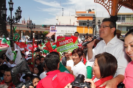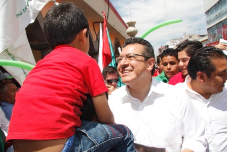 Marco Mena, candidato al Gobierno del Estado por la mega coalición PRI-PVEM-Nueva Alianza-PS, convivió en la cabecera municipal de Chiautempan con personas de todas las edades, durante el arranque de las brigadas de promoción del voto.