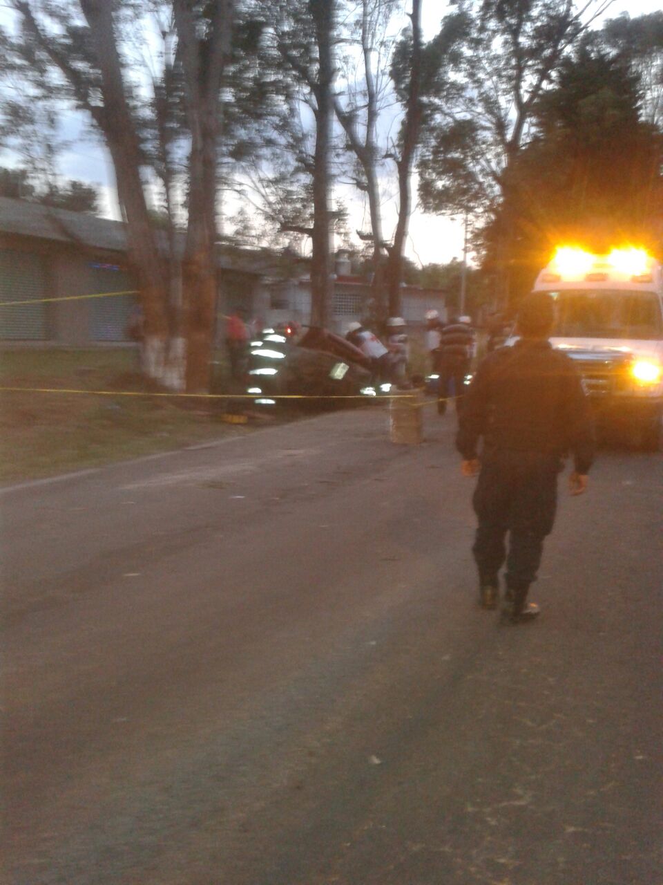 Una persona de sexo masculino de aproximadamente 40 años de edad pierde la vida al quedar prensado en el interior de su camioneta tras impactarse contra un árbol, donde al parecer el exceso de velocidad y la falta de precaución originaron que se saliera de la carretera en plena curva.