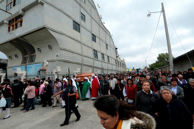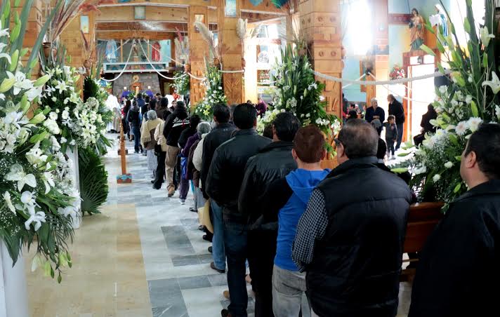 11; 15 llega el cuerpo al interior del templo, siguen las filas interminables de fieles a despedirse de su guía, algunos ya no lo consiguen, así ha sido toda la noche, en el velatorio, mucha gente lo quiere ver por última vez.