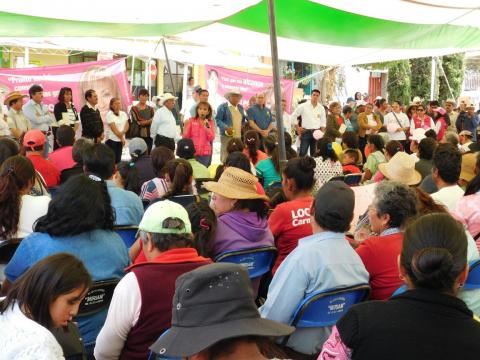 Tras recibir un cálido recibimiento de los pobladores provenientes de las comunidades de La Trasquila, San Juan Bautista, San Pedro Ecatepec y de la cabecera municipal, quienes se sumaron con entusiasmo a su campaña, la abanderada destacó que en el Senado de la República gestionó recursos para la construcción de una cancha de futbol y la pavimentación de la carretera, a fin de mejorar y ampliar la infraestructura de esa población.