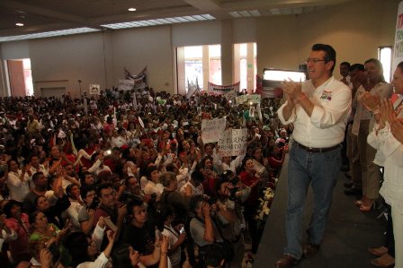 En este acto, Anabelle Gutiérrez, quien fungía como consejera estatal del PRD, anunció que, junto con un grupo importante de perredistas, decidió dejar las filas de ese instituto político y sumarse al proyecto de Marco Mena porque es quien tiene la capacidad para ser gobernador.