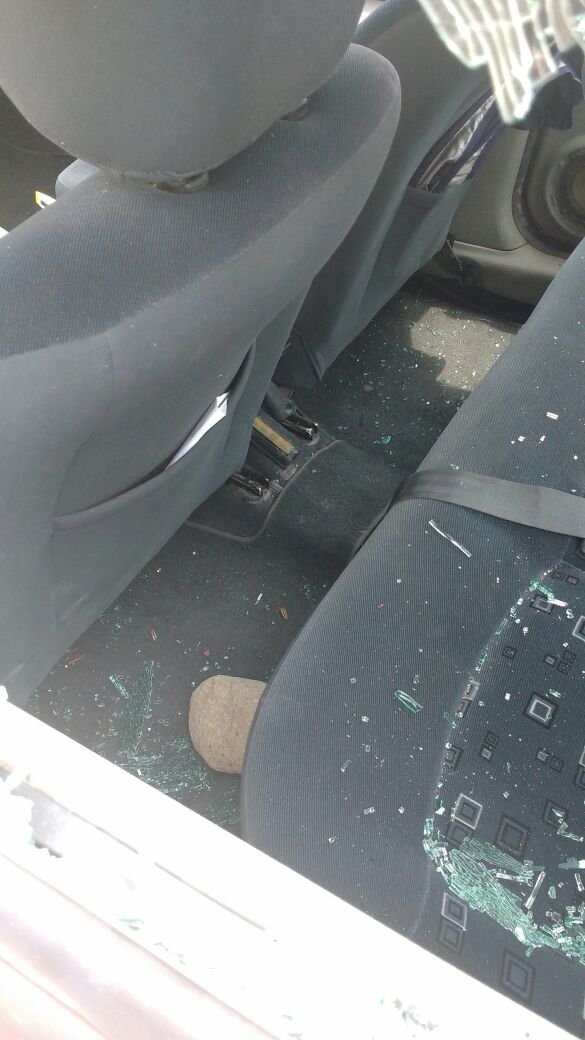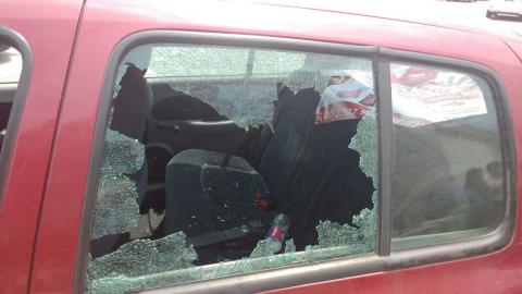El auto platina en que viajaban quedó con los cristales destrozados.