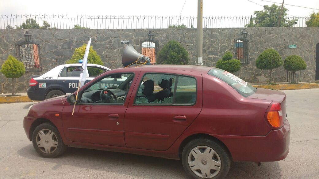 La gente lanzaba maldiciones a los montoneros supuestos simpatizantes de Gloria Cuatianquiz. Y por fin llegaron elementos de la policía municipal a bordo de la patrulla 3-2101. No detuvieron a los agresores pero ocasionaron que estos huyeran.