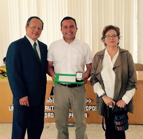 Por el alto nivel y desempeño académico obtenido en la realización del Doctorado en Humanidades, línea en Historia, el Dr. Osvaldo Castillo Juárez, catedrático de la Licenciatura y Maestría en Historia de la Facultad de Filosofía y Letras de la Universidad Autónoma de Tlaxcala (UAT), recibió de manos del Dr. José Octavio Nateras Domínguez, Rector de la Universidad Autónoma Metropolitana (UAM), Unidad Iztapalapa, la medalla y el reconocimiento al Mérito Universitario por haber obtenido las mejores calificaciones y presentar una investigación doctoral de relevancia denominada: “Altepetl de San Francisco Topoyanco: Génesis, actores y reconfiguración espacial de la Casa Señorial en el Periodo Colonial Tlaxcalteca, siglos XVI- XVIII”.