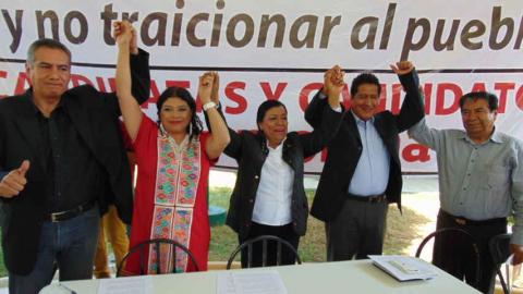 La comisionada del partido Movimiento de Regeneración Nacional (Morena) en Tlaxcala, Clara Brugada Molina, celebró este día junto con las y los candidatos a presidentes de comunidad, la restitución de los 33 candidatos que habían sido bajados de la contienda por no cumplir con el principio de paridad de género.