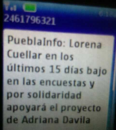 Personal allegado al área de comunicación social confió a este medio que le fue pagada una fuerte cantidad de dinero a una empresa dedicada al marketing político para mandar un texto que dice “Lorena Cuéllar en los últimos 15 días bajo en las encuestas y por solidaridad apoyará el proyecto de Adriana Dávila”, mensaje que el dirigente del PRD aseguró es totalmente falso.