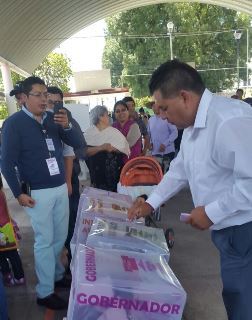 Eloy Reyes Juárez, candidato del PRD a la presidencia municipal de Apetatitlán acudió hace unos momentos a emitir su voto en la casilla contigua 2 que se instaló en la comunidad de Belén Atzitzimititlán.