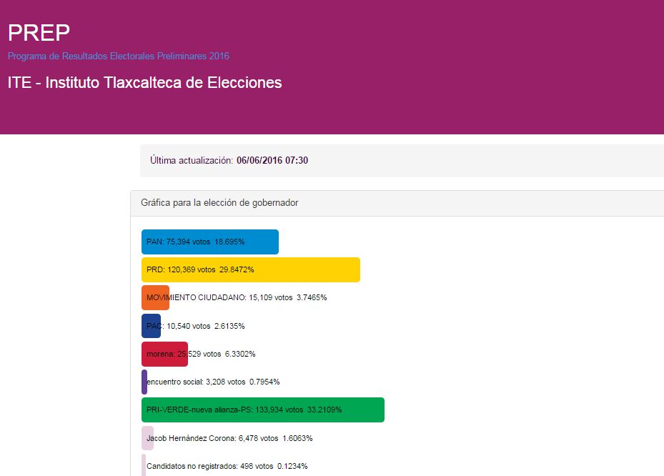 El PREP proveyó información sobre las cuatro elecciones llevadas a cabo durante este domingo cinco de junio  de 2016.