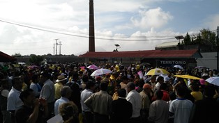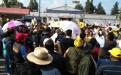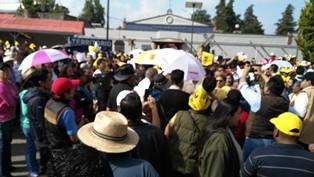 Seguidores de la candidata del PRD al gobierno de Tlaxcala, Lorena Cuéllar Cisneros, realizan una protesta a las puertas del Instituto Tlaxcalteca de Elecciones (ITE), donde se llevará a cabo el cómputo final de la elección de gobernador y la asignación de las diputaciones plurinominales.