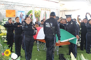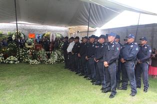 Cuatro compañeros de Roberto cubrieron el féretro con la bandera nacional mientras un estandarte del municipio de Ixtacuixtla era colocado. Los uniformados realizaron una guardia de honor donde cada uno de ellos se despedía de su amigo.