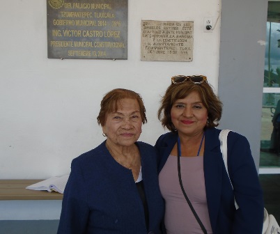 Tzompantepec, Tlaxcala.- Residentes actuales del Condado de Queens, Nueva York y Tuxtla Gutiérrez, Chiapas, visitaron este día la cabecera municipal de Tzompantepec, donde recibieron una amplia explicación de mural que trata el tema histórico de la batalla del ejército tlaxcalteca comandado por Xicohténcatl Axayacatzin sobre las fuerzas de Hernán Cortés, la cual tuvo lugar en este sitio denominado recientemente como “El Sitio de la Alianza”.