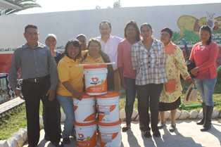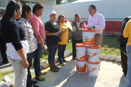 Cumpliendo una de las peticiones del comité de padres de familia y personal docente del jardín de niños “Narciso Mendoza”, ubicado en la cabecera municipal, el alcalde de Nativitas Cuauhtémoc Barranco Palacio, entregó cinco cubetas de pintura para la rehabilitación del plantel educativo.