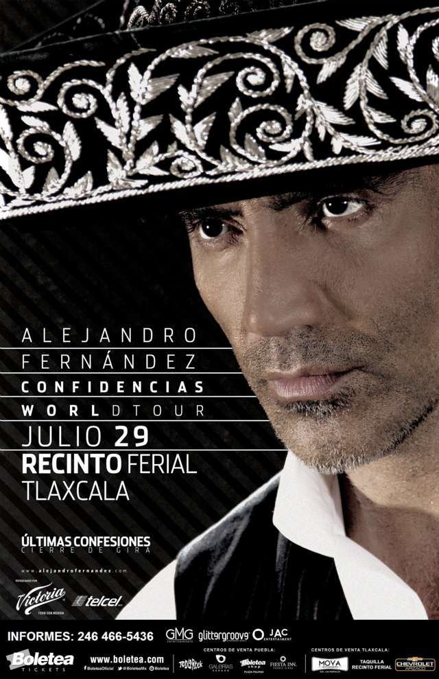 TLAXCALA, Tlax.- LA cuenta regresiva ya comenzó, el concierto más esperado por todos los tlaxcaltecas está a tan solo unos días de llegar al estado de Tlaxcala, para complacer a más de seis mil asistentes en la Explanada del Recinto Ferial, con la última parte del cierre de la gira “Confesiones World Tour” de Alejandro Fernández.