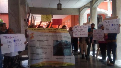 Entre los manifestantes se encuentran 12 de 15 presidentes de comunidad quienes junto con la representante legal del municipio, presentaron la demanda de revocación de mandato contra el alcalde de Chiautempan a la Secretaría Parlamentaria del Congreso local.