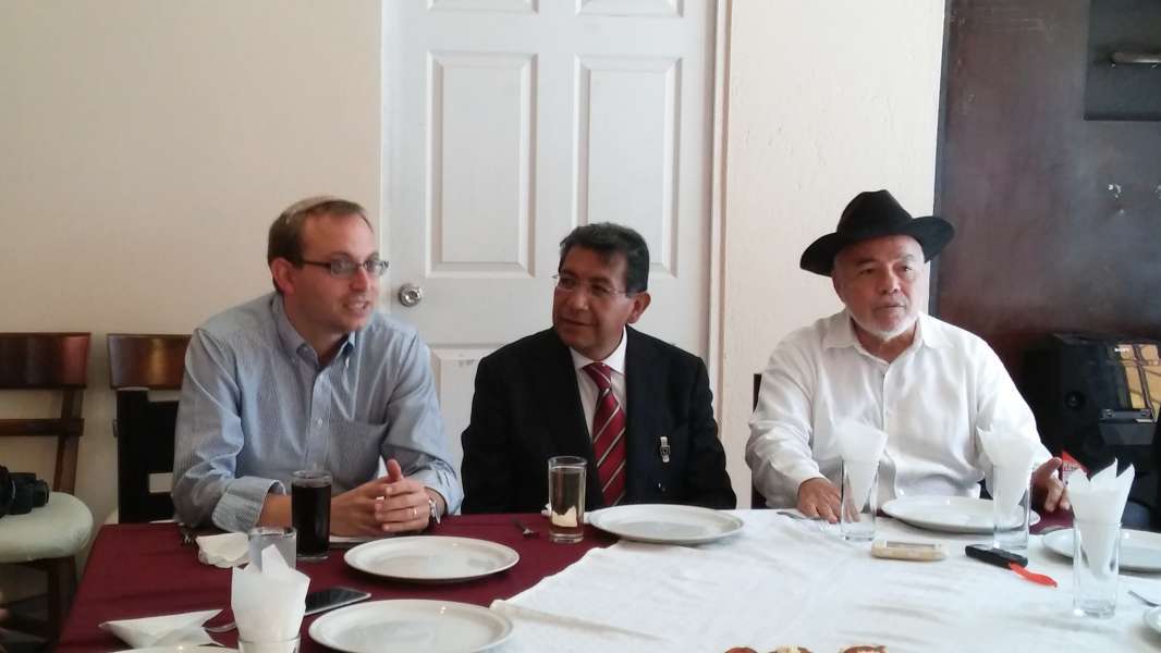 Flanqueado por el diputado con licencia Serafin Ortiz Ortiz quien fue anfitrión del religioso, el pastor hizo un recuento sobre la situación que la cristiandad vive en Israel por la guerra intermitente que desde hace décadas priva y ha dejado miles de muertos.