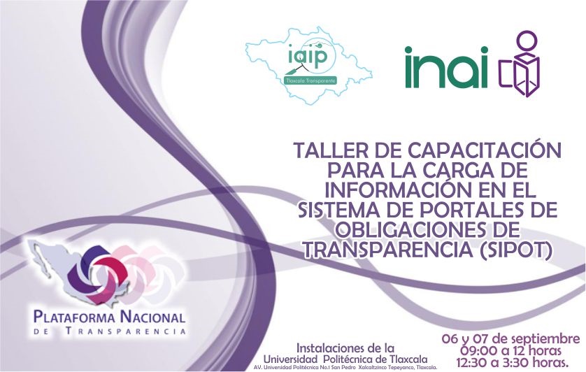 Edgar González Romano, Comisionado Presidente del IAIP TLAXCALA, aseguró que la Plataforma Nacional de Transparencia es una herramienta importante para consolidar el papel de la transparencia y la rendición de cuentas en nuestro Estado, aunado a ello agradeció al Instituto Nacional de Transparencia, Acceso a la Información y Protección de Datos Personales por el respaldo brindado al instituto, y mencionó que el martes 06 y miércoles 07 de septiembre vendrá personal del INAI a reforzar los trabajos de capacitación con el “Taller de Capacitación para la carga de información en el Sistema de Portales de Obligaciones de Transparencia (SIPOT)”, para lo que se convocó a los encargados de la unidades de transparencia en las instalaciones de la Universidad Politécnica de Tlaxcala.
