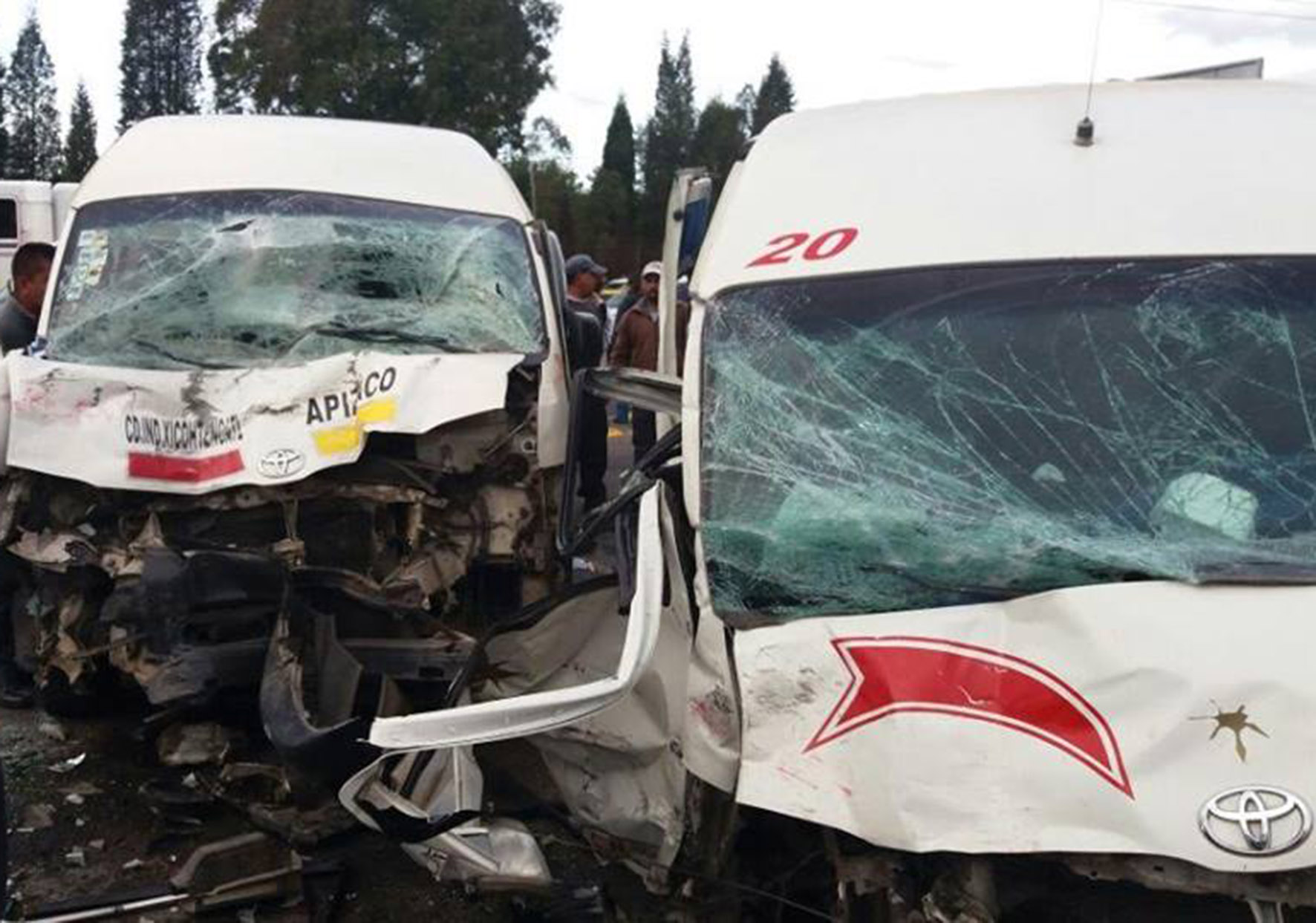 El percance lo protagonizaron las unidades de las empresas “Pueblos Unidos del Norte” y “Colectivos”, y el motivo, de acuerdo con los testimonios de algunos lesionados, fue que ambos quisieron ganar el pasaje en la esquina de CIX con la carretera federal Apizaco-Tlaxco.