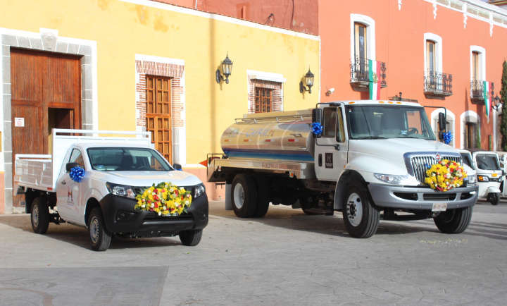 Las dos unidades entregadas consisten en un contenedor tanque de acero inoxidable con capacidad de 10 mil litros y una camioneta equipada para la cuadrilla de albañilería los dos modelos 2017 debidamente emplacados y verificados.