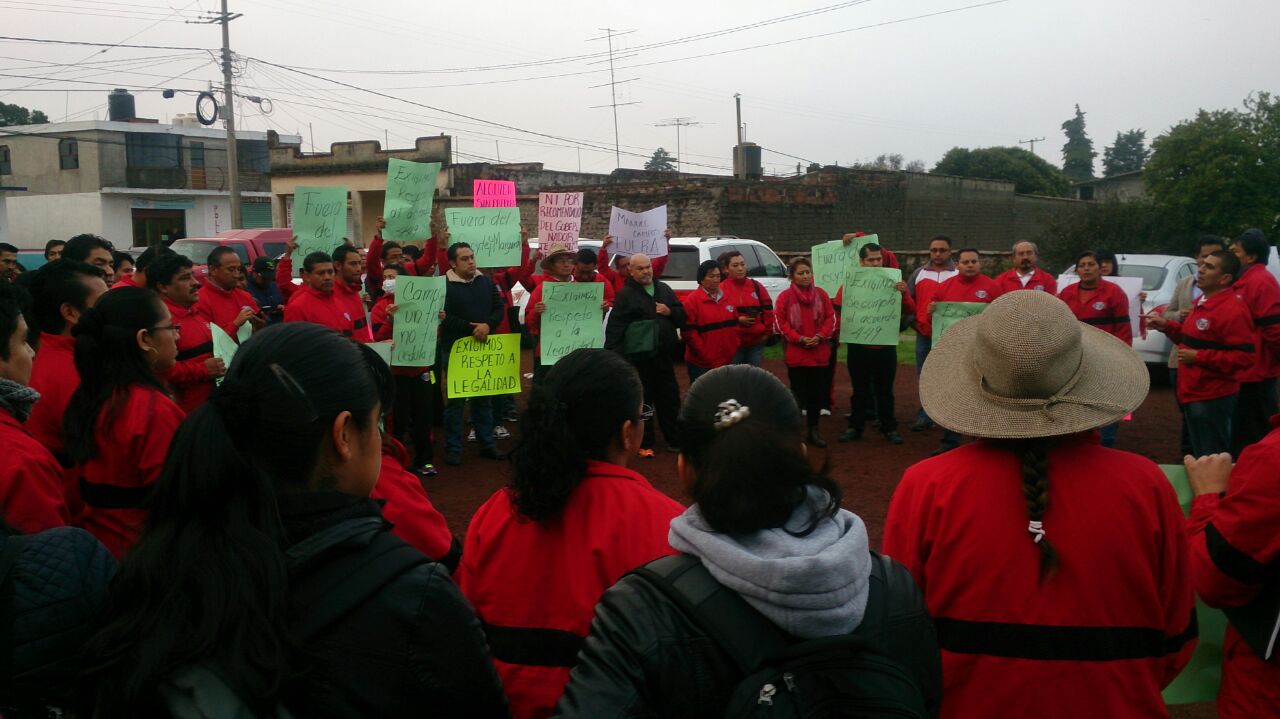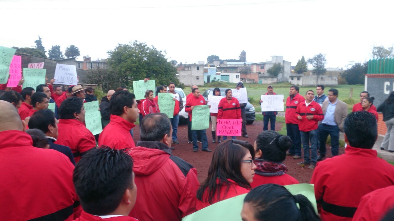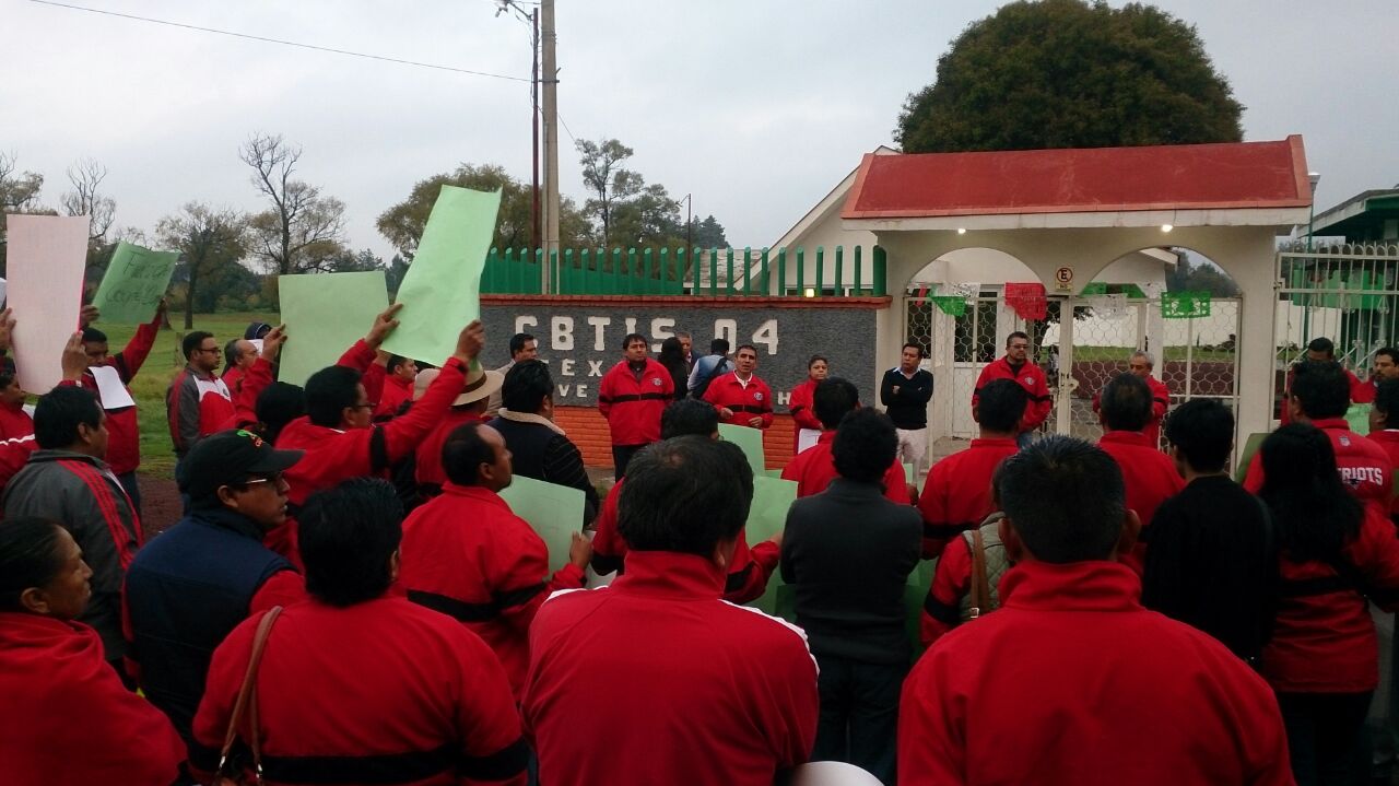 Trabajadores afines al sindicato de la CTM CECyTE se manifestaron en las afueras del plantel CBTIS en Texcalac municipio de Apizaco y paralizaron actividades la mañana se este martes para exigir la destitución de la directora de ese plantel.
