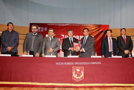 Precisó que estas prácticas que caracterizan a los miembros de la máxima Casa de Estudios en la entidad, se ve fortalecido con la presentación de los resultados de la gestión del Director de la Facultad, quien con alto espíritu de identidad y pertenencia, entrega elementos palpables y de relevancia, que han impulsado el quehacer universitario con contundencia, constancia y altura de miras, para colocarse como un recinto de vanguardia en la generación de conocimiento de la Ciencia Jurídica.