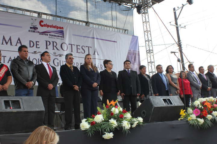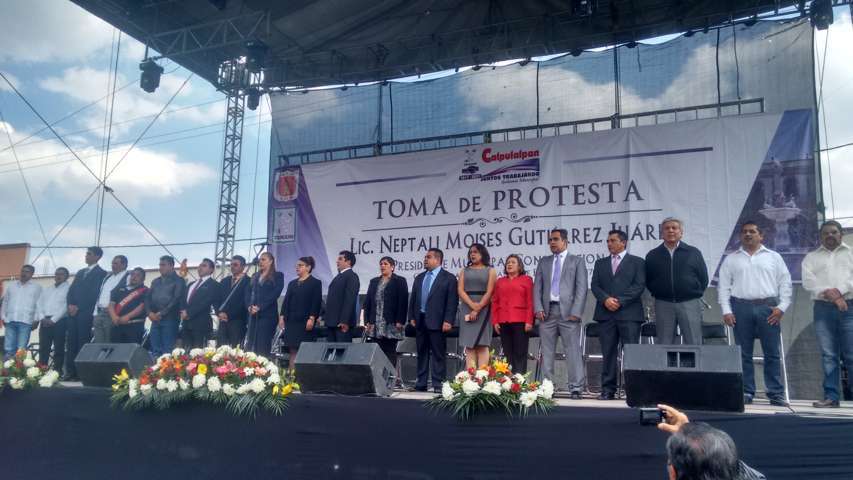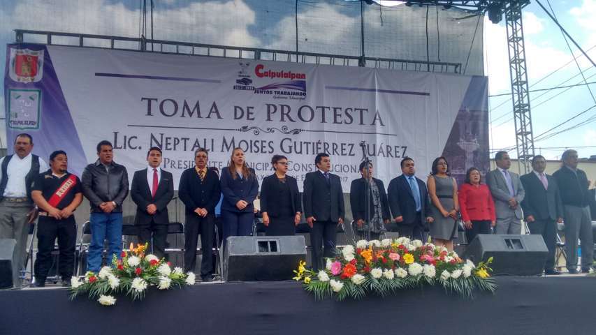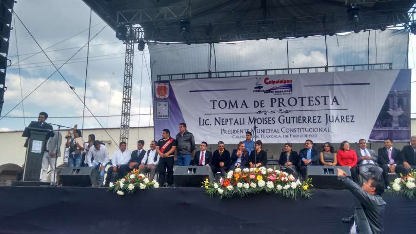 En un evento con buena convocatoria, en la explanada del parque central, ante cientos de habitantes del lugar, Neptaly Moisés Gutiérrez Juárez, tomó protesta cono Alcalde del Municipio de Calpulalpan y a su vez, tomó protesta a los regidores que habrán de integrar el cabildo durante esta administración 2017 – 2021, también hizo lo propio la síndico municipal, Carina Flores Avelar