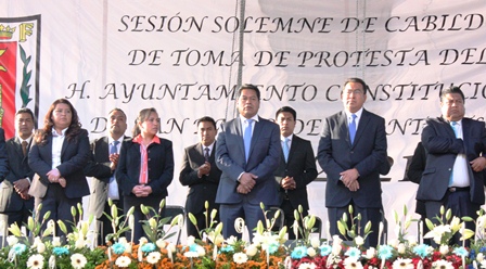 El alcalde electo de San Pablo del monte, Cutberto Cano Coyotl, rindió protesta junto con los integrantes de su cabildo al frente de la alcaldía que ocupará durante cuatro años y ocho meses que durará esta administración.