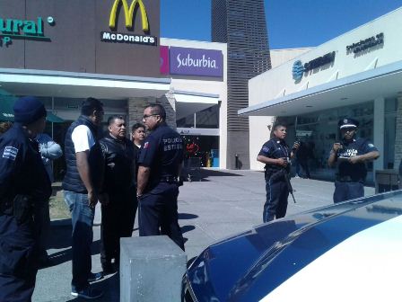 Eloy Reyes y Servando Contreras recorrieron la plaza comercial, lugar donde se puede observar la presencia de varios elementos de la policía municipal y estatal.