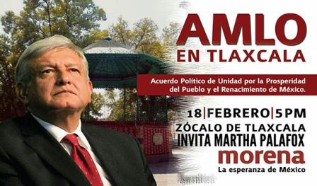 CDMX.- A través de sus redes sociales la Senadora de la República, Martha Palafox Gutiérrez, anunció la visita del líder nacional de Morena, Andrés Manuel López Obrador a Tlaxcala.