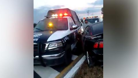 Las unidades oficiales acudieron a prestar ayuda a un vehículo que sufrió un siniestro y al abanderarlo llegó un Ford Mustang y se estrelló en contra de las patrullas del municipio.