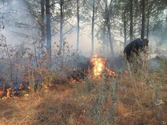 La CES en conjunto con la CGE y Conafort realizan maniobras para acabar con las llamas que acaban los pastizales y árboles
