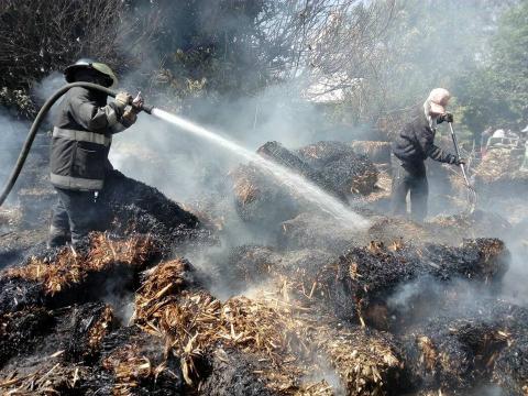 Al lugar llegaron los bomberos del estado para sofocar las llamas que amenazaban el hogar de una familia, quienes no tuvieron que lamentar más que daños materiales, debido a que se quemaron sus pacas de forraje.
